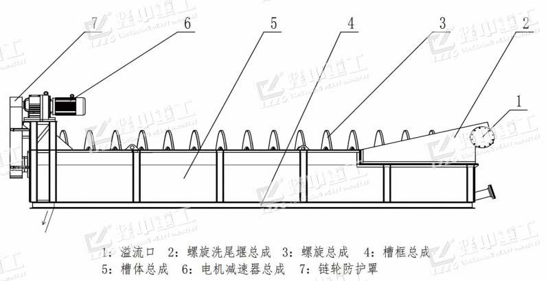 3、螺旋洗砂機(jī)具有可調(diào)式溢流堰板,確保了細(xì)粒產(chǎn)品的穩(wěn)定性,選洗效率高。